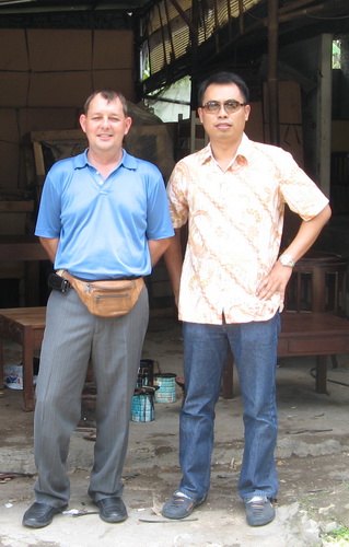 Mr. John Schaminee from Plantation Furniture & Antiques Cole Bay, St.Maarten Netherlands Antilles when inspected our workshop with Mr. Unggul (Owner) and Mr. Munan (QC staff)